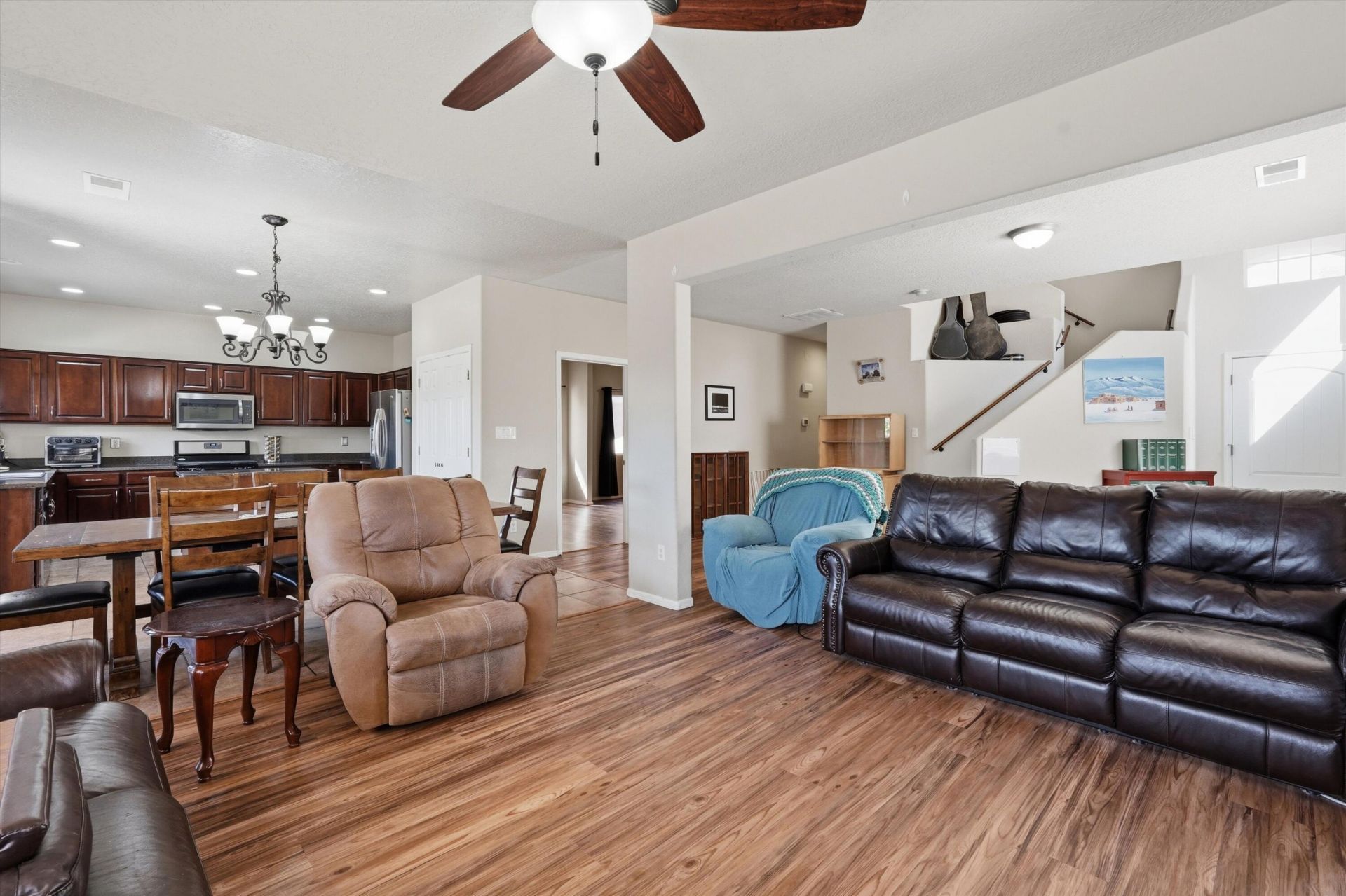 Gorgeous 2,932 sq ft home just minutes from Volcano Vista High School! This well-loved abode features little to no electric bills with a full paid solar array and open lighting. Major energy savings and new refrigerated air conditioners for year round comfort. The open floor plan includes 5 bedrooms and 4 bathrooms, with a downstairs primary bed/ bath handrail accessible layout for safety. Spacious bedrooms, a 3-car garage, and a new storage shed offer plenty of space. Everything in the home has been recently updated and well cared for. The backyard opens to a beautiful park with no rear neighbors and great views. Come see your new home today. Don't miss out on this one!